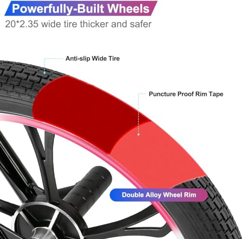 Excellent Safety: 20 inch kids bmx bike with non-slip u-brake handbrake system; Wide 2.35″ tyres for more stability; Hi-ten steel frame, chain guard and front and rear reflectors keep your kids safe while riding